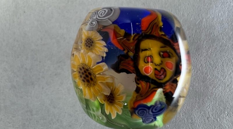 最新作です。 5年ぶりに向日葵の花パーツ(ミルフィオリ)を作りました。 5年前に作った形より自分で納得いく出来になったかなー。 バーナー作業に集中できる時間に限りがあるので、 向日葵の花のパーツを作るのに2週間ほどかかっ